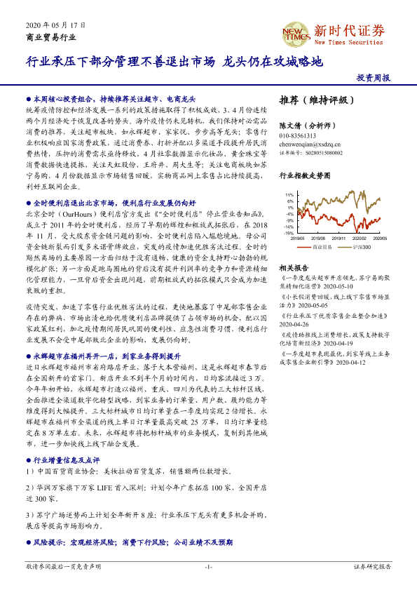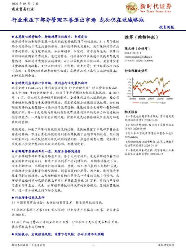 【新时代证券】【20200517】商业贸易行业投资周报:行业承压下部分管理不善退出市场 龙头仍在攻城略地-14页