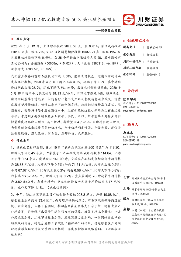【川财证券】【20200519】唐人神拟10.2亿元投建甘谷50万头生猪养殖项目-3页