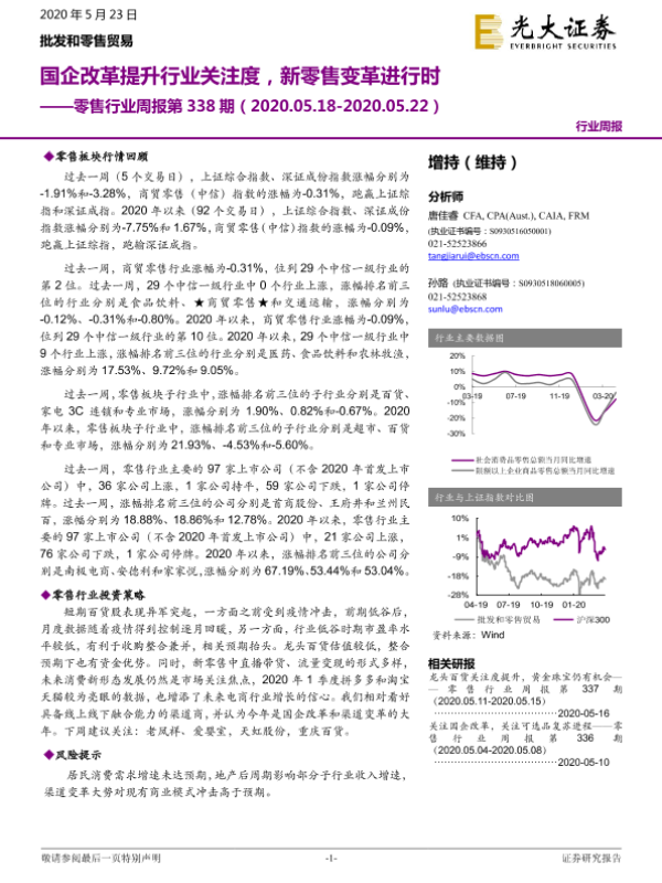 【光大证券】【20200523】零售行业周报第338期:国企改革提升行业关注度,新零售变革进行时-12页
