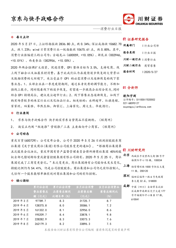 【川财证券】【20200527】消费行业日报:京东与快手战略合作-3页