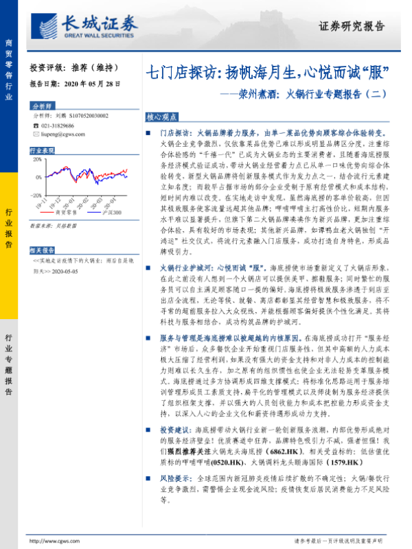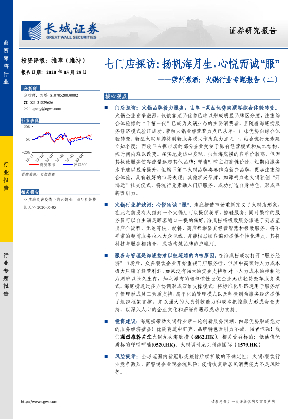 长城证券 住宿餐饮 2020年 PDF 1.47 MB