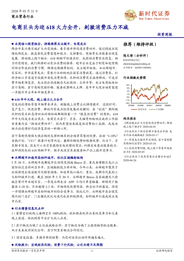 【新时代证券】【20200531】商业贸易行业:电商巨头为迎618火力全开,刺激消费压力不减-12页