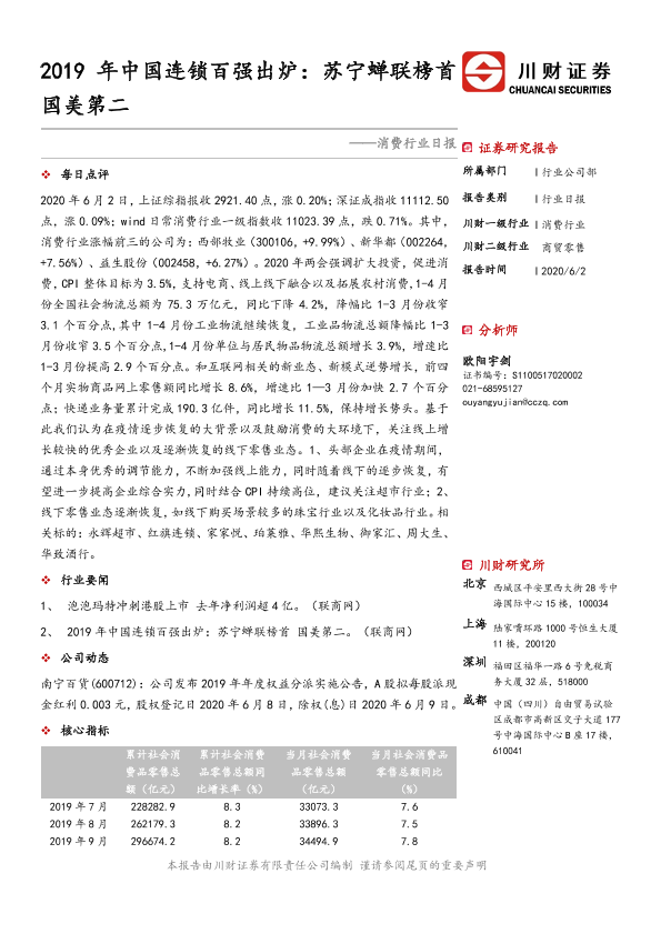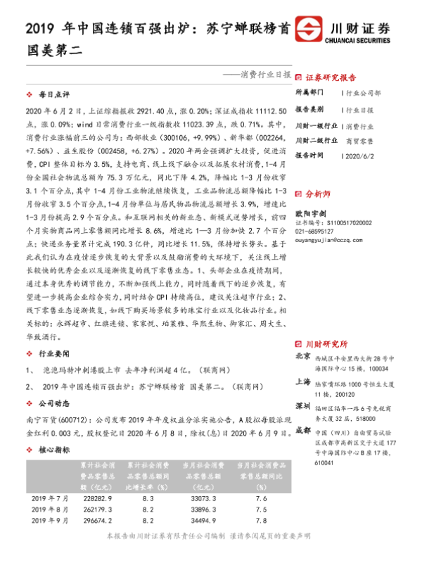 商贸零售 消费行业 电商 疫情恢复 连锁百强