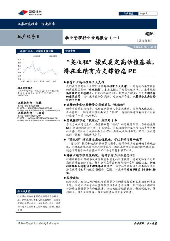 【国信证券】【20200601】物业管理行业专题报告:‘类收租’模式奠定高估值基础,潜在业绩有力支撑静态PE-24页