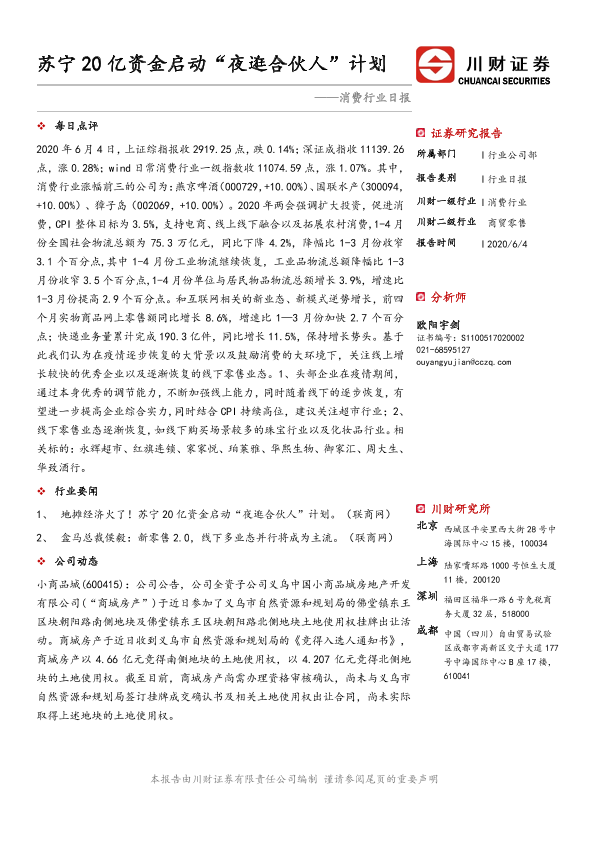 【川财证券】【20200604】消费行业日报:苏宁20亿资金启动“夜逛合伙人”计划-3页