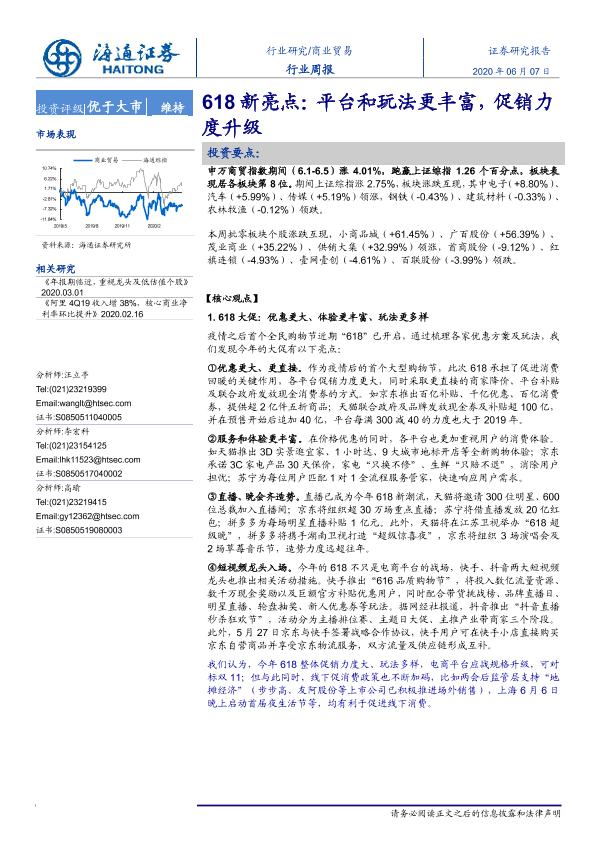 【海通证券】【20200607】618新亮点:平台和玩法更丰富,促销力度升级-6页