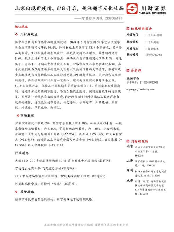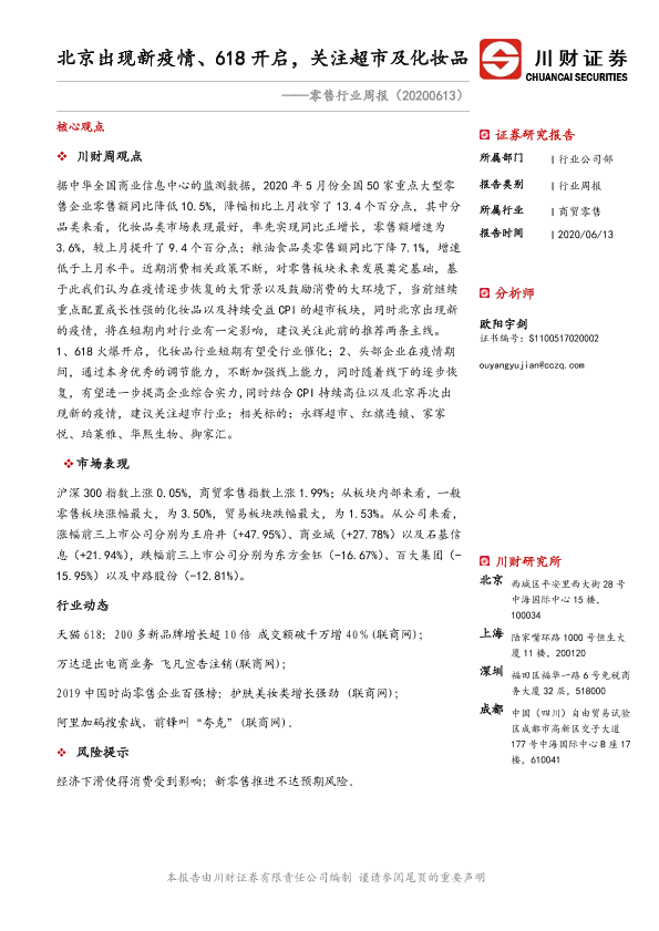 【川财证券】【20200613】北京出现新疫情、618开启,关注超市及化妆品-13页