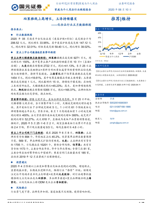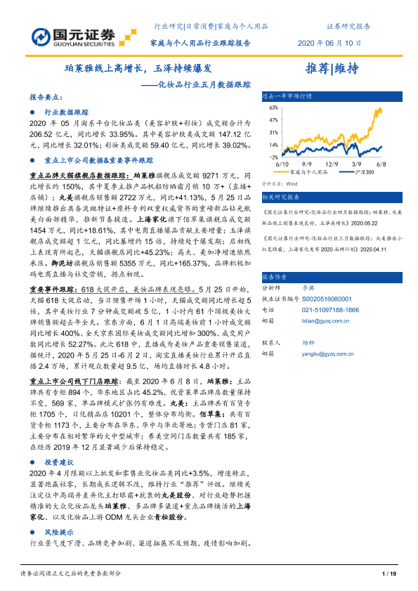 【国元证券】【20200610】化妆品行业五月数据跟踪:珀莱雅线上高增长,玉泽持续爆发-19页