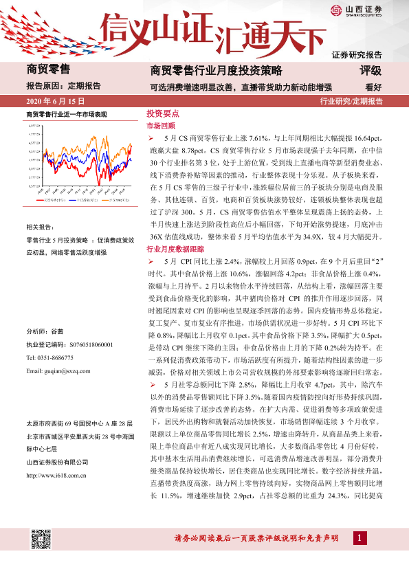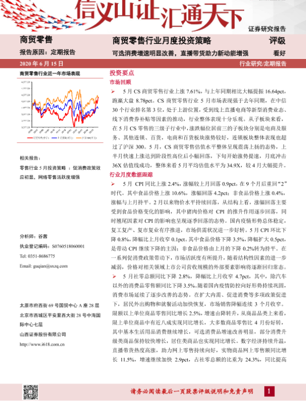 【山西证券】【20200615】商贸零售行业月度投资策略:可选消费增速明显改善,直播带货助力新动能增强-14页