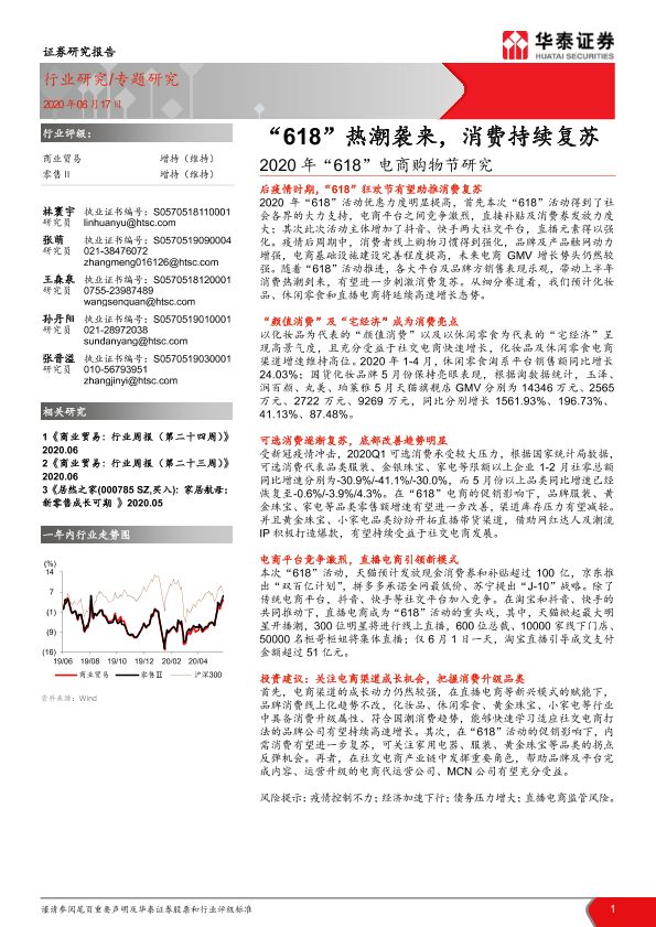 【华泰证券】【20200617】2020年“618”电商购物节研究:“618”热潮袭来,消费持续复苏-27页