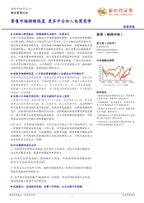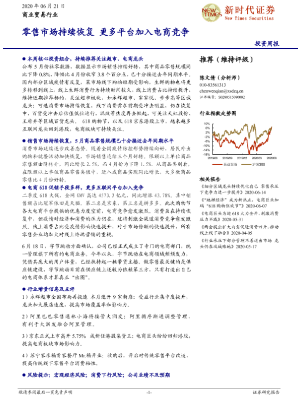 【新时代证券】【20200621】商业贸易行业投资周报:零售市场持续恢复 更多平台加入电商竞争-13页