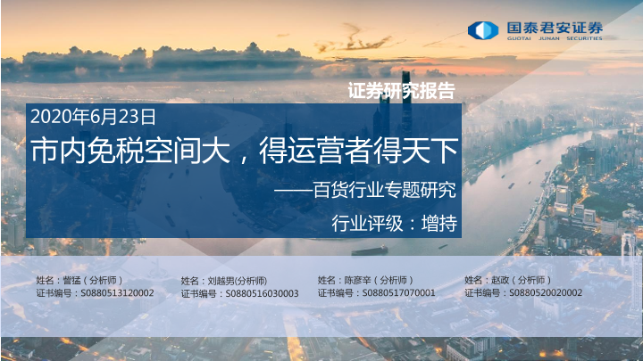 【国泰君安证券】【20200623】百货行业专题研究:市内免税空间大,得运营者得天下-49页