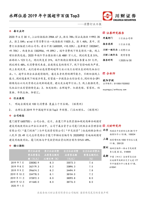 【川财证券】【20200630】永辉位居2019年中国超市百强Top3-3页