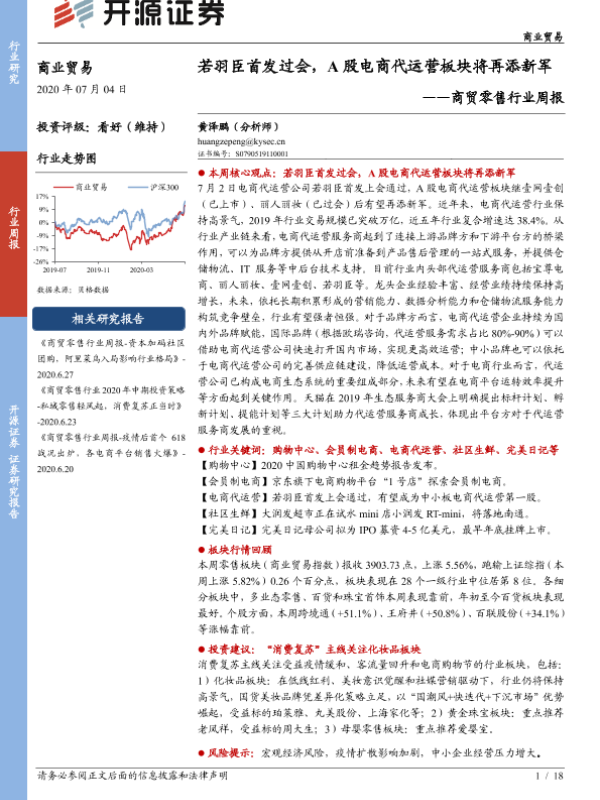 【开源证券】【20200704】商贸零售行业周报:若羽臣首发过会,A股电商代运营板块将再添新军-18页