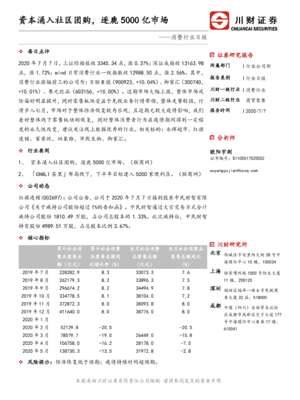 【川财证券】【20200707】消费行业日报:资本涌入社区团购,逐鹿5000亿市场-3页
