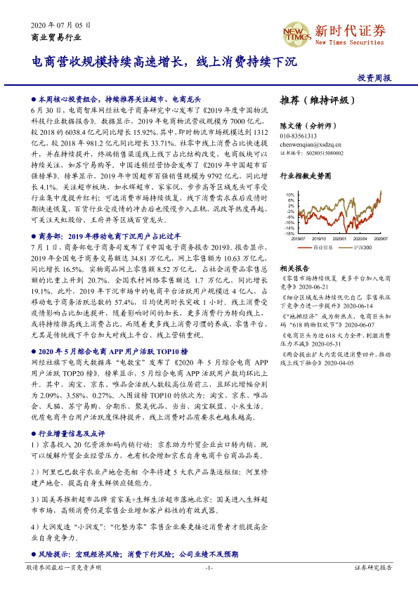 【新时代证券】【20200705】商业贸易行业投资周报:电商营收规模持续高速增长,线上消费持续下沉-12页