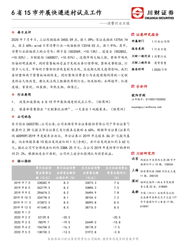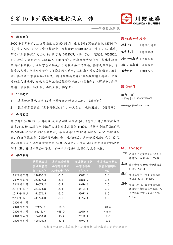 【川财证券】【20200709】消费行业日报:6省15市开展快递进村试点工作-3页