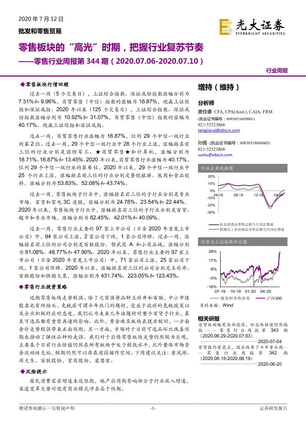 【光大证券】【20200712】零售行业周报第344期:零售板块的“高光”时期,把握行业复苏节奏-11页