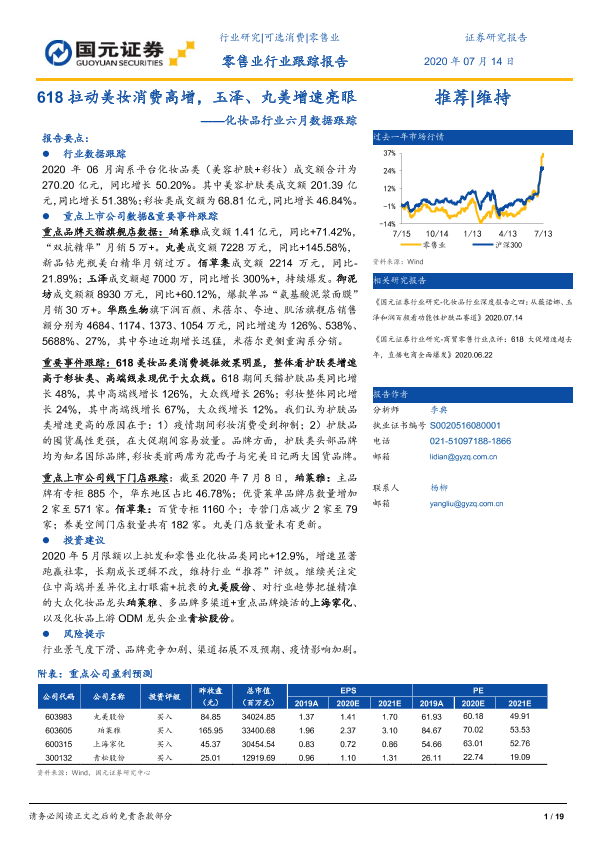 【国元证券】【20200714】618拉动美妆消费高增,玉泽、丸美增速亮眼-19页