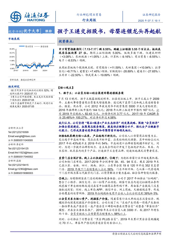 【海通证券】【20200719】商业贸易行业周报:孩子王递交招股书,母婴连锁龙头再起航-8页