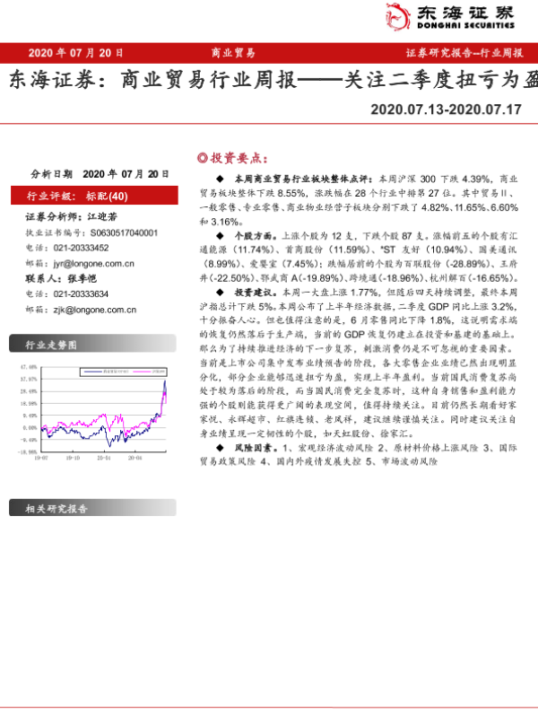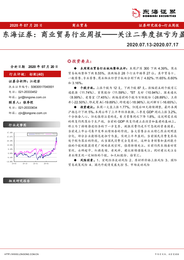 【东海证券】【20200720】商业贸易行业周报:关注二季度扭亏为盈-8页
