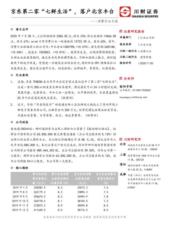 【川财证券】【20200730】消费行业日报:京东第二家“七鲜生活”,落户北京丰台-3页