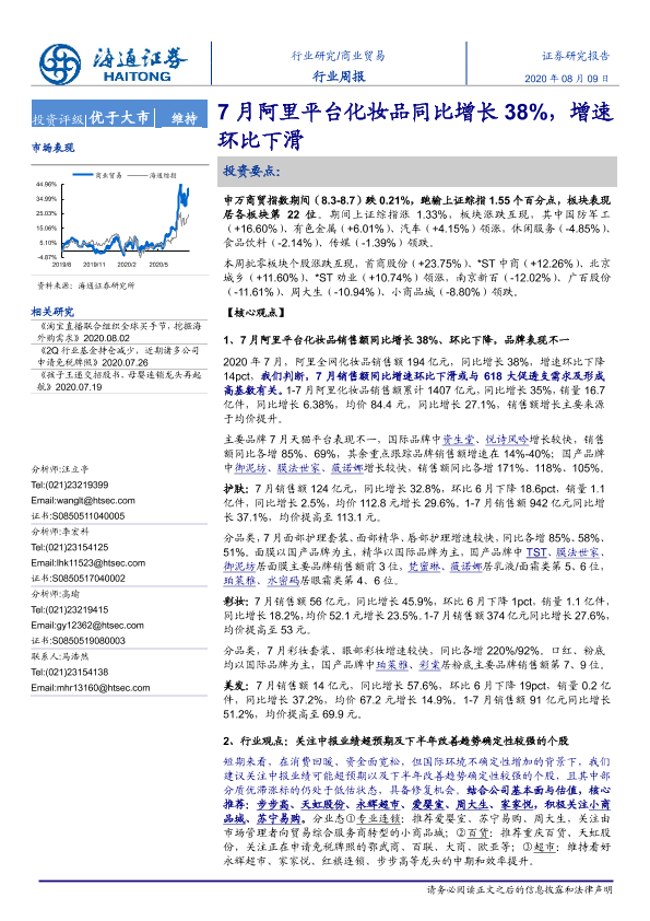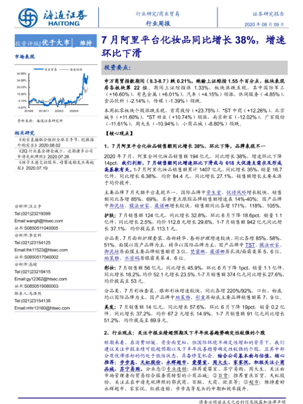 【海通证券】【20200809】7月阿里平台化妆品同比增长38%,增速环比下滑-7页