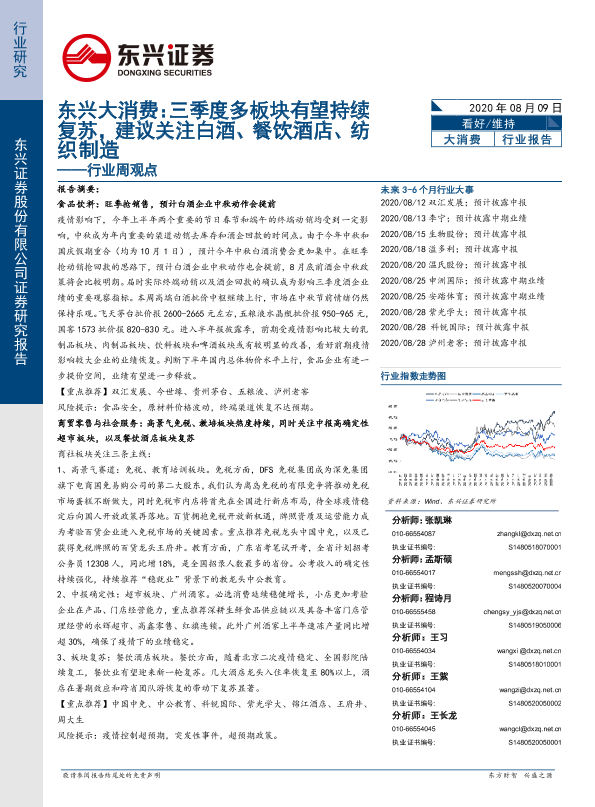 【东兴证券】【20200809】三季度多板块有望持续复苏,建议关注白酒、餐饮酒店、纺织制造-22页
