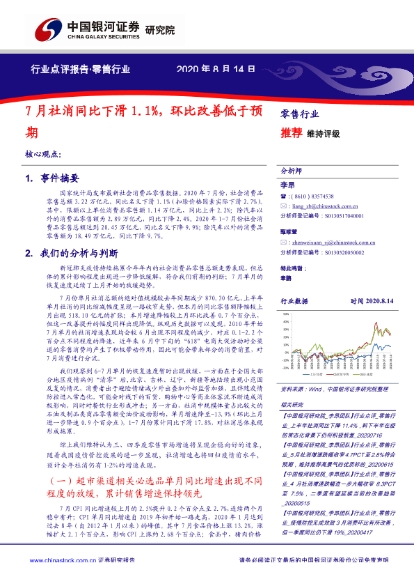 【银河证券】【20200814】7月社消同比下滑1.1%,环比改善低于预期-5页