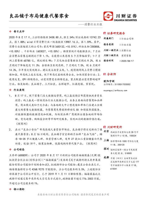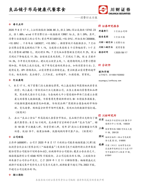 【川财证券】【20200817】消费行业日报:良品铺子布局健康代餐零食-3页