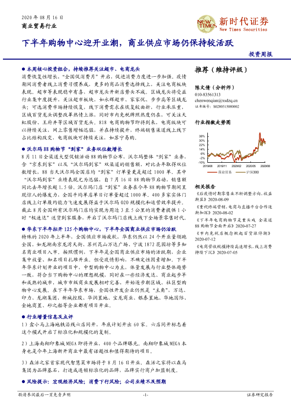 【新时代证券】【20200816】商业贸易行业投资周报:下半年购物中心迎开业潮,商业供应市场仍保持较活跃-14页