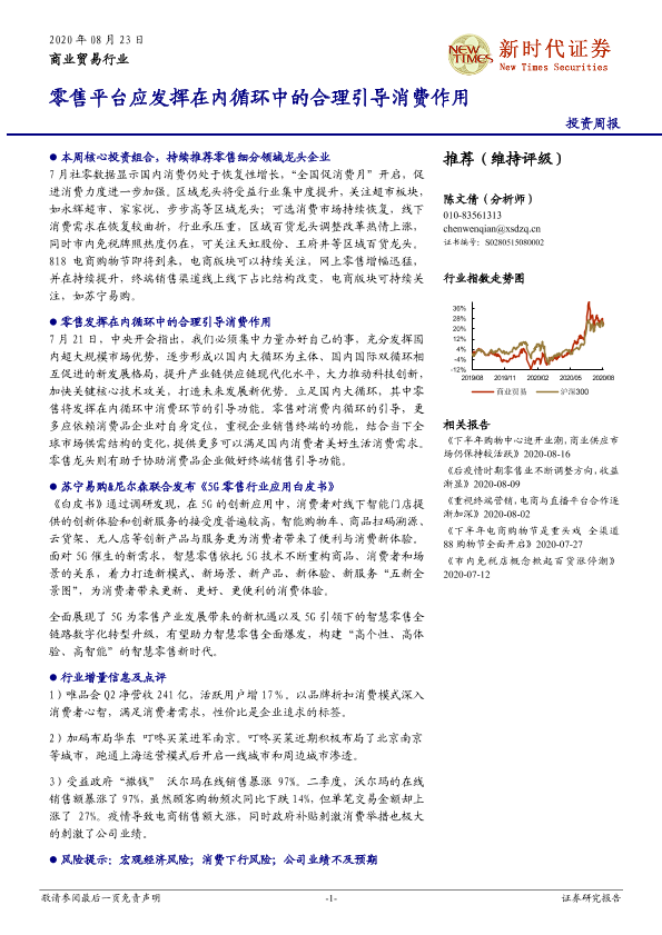 【新时代证券】【20200823】商业贸易行业投资周报:零售平台应发挥在内循环中的合理引导消费作用-15页