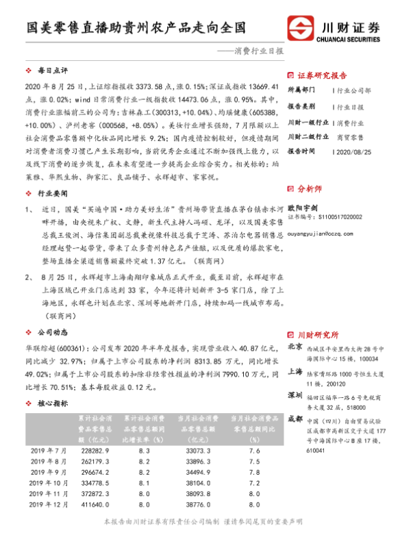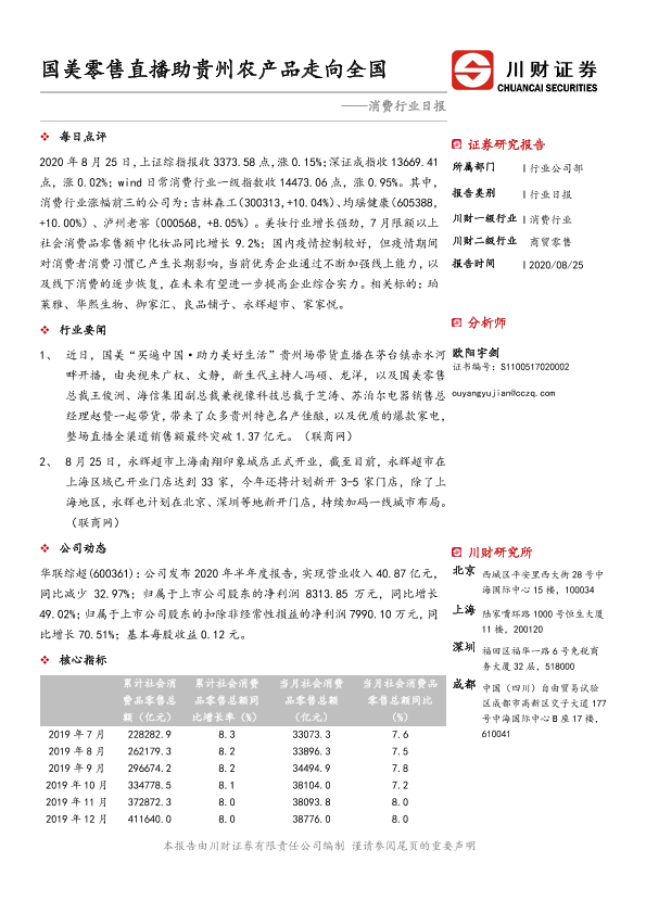 【川财证券】【20200825】消费行业日报:国美零售直播助贵州农产品走向全国-3页