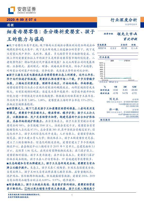 【安信证券】【20200907】细看母婴零售:条分缕析爱婴室、孩子王的能力与谋局-30页