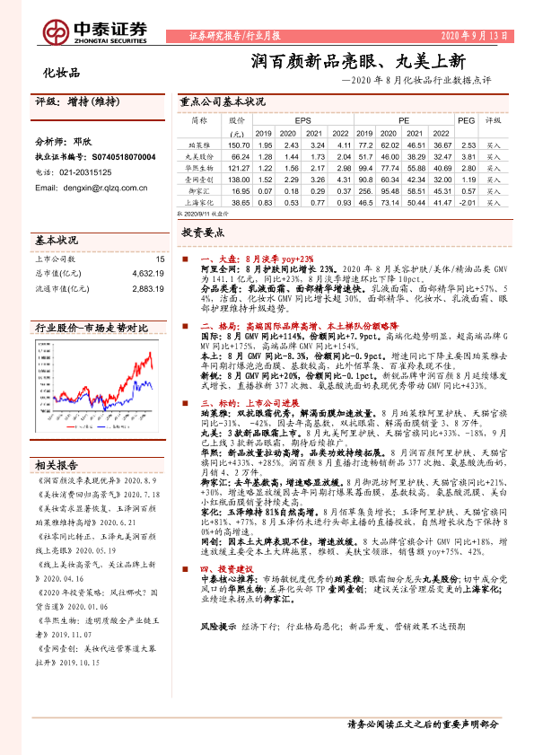 【中泰证券】【20200913】2020年8月化妆品行业数据点评:润百颜新品亮眼、丸美上新-21页