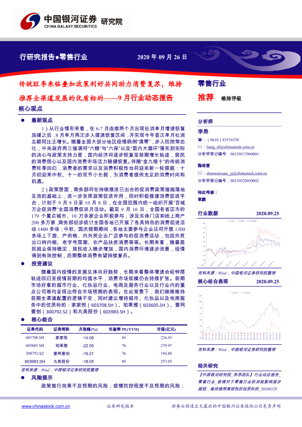 【银河证券】【20200926】零售9月行业动态报告:传统旺季来临叠加政策利好共同助力消费复苏-30页
