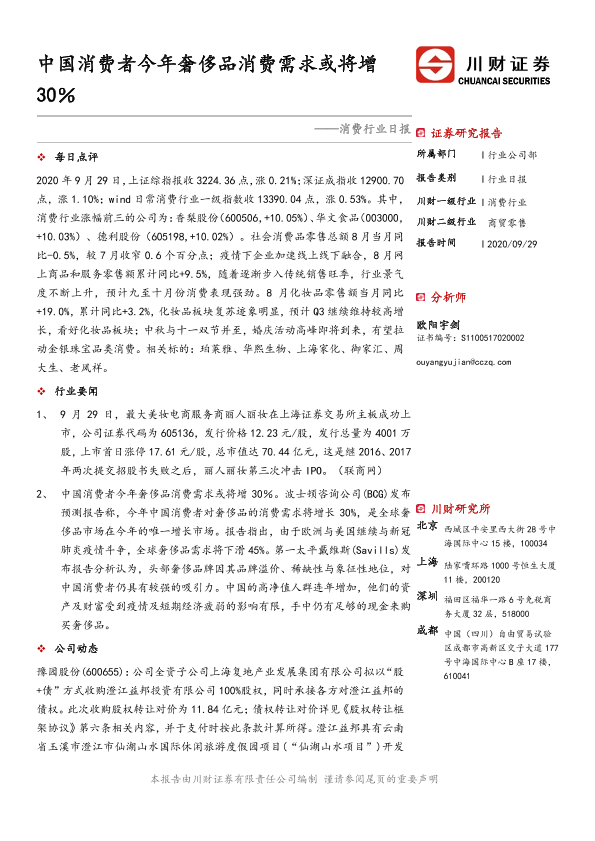 【川财证券】【20200929】消费行业日报:中国消费者今年奢侈品消费需求或将增30%-3页