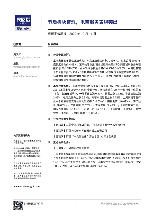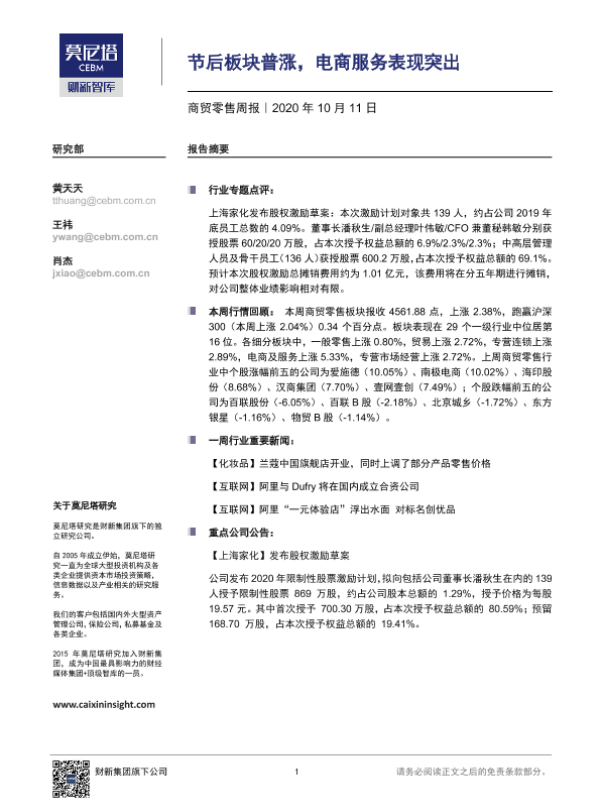 【莫尼塔研究】【20201011】商贸零售周报:节后板块普涨,电商服务表现突出-6页
