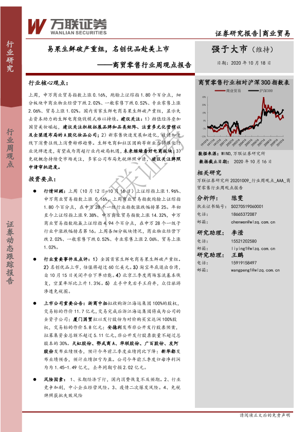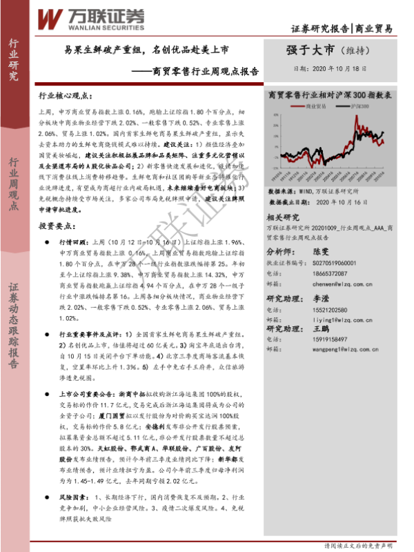 【万联证券】【20201018】商贸零售行业周观点报告:易果生鲜破产重组,名创优品赴美上市-9页