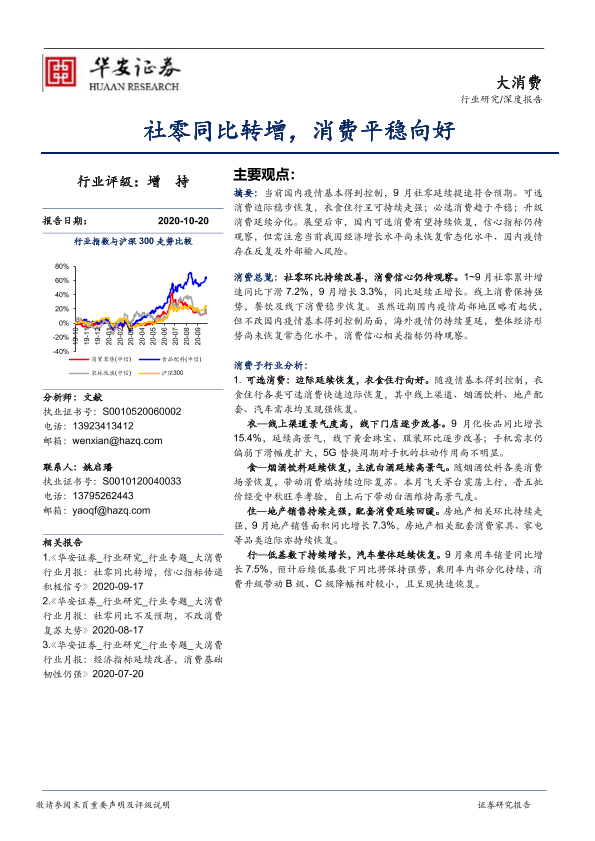 【华安证券】【20201020】大消费深度报告:社零同比转增,消费平稳向好-22页