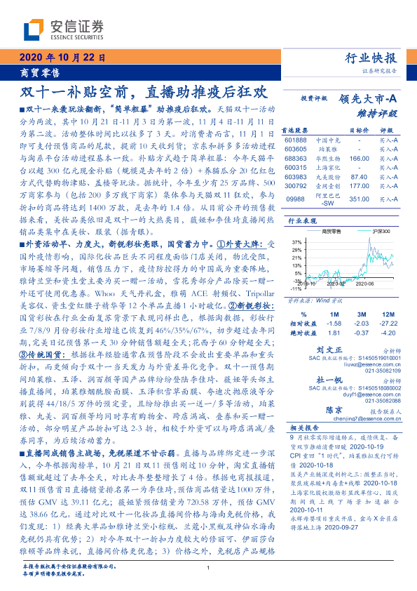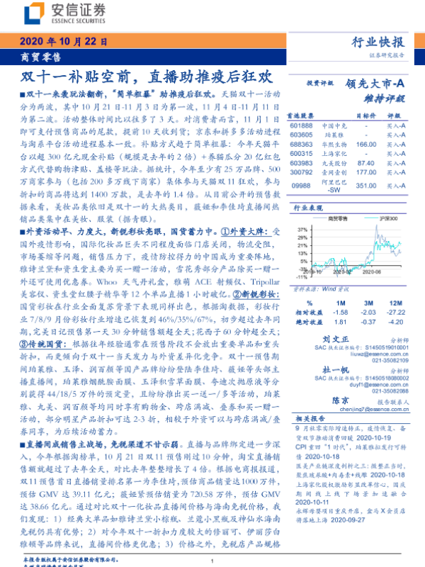 【安信证券】【20201022】商贸零售行业快报:双十一补贴空前,直播助推疫后狂欢-10页