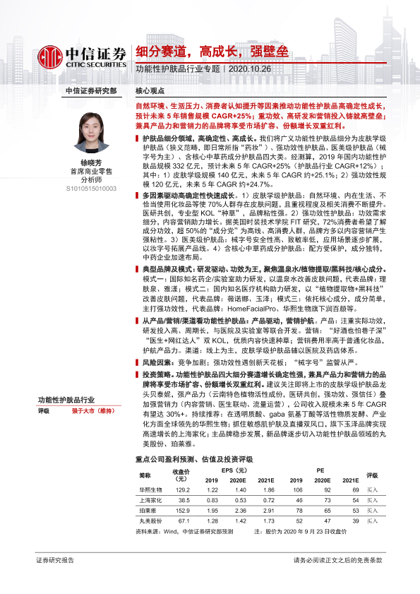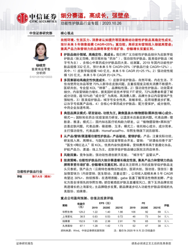 【中信证券】【20201026】功能性护肤品行业专题:细分赛道,高成长,强壁垒-51页