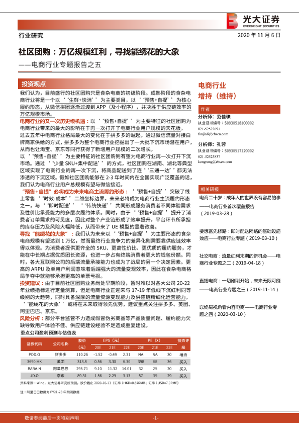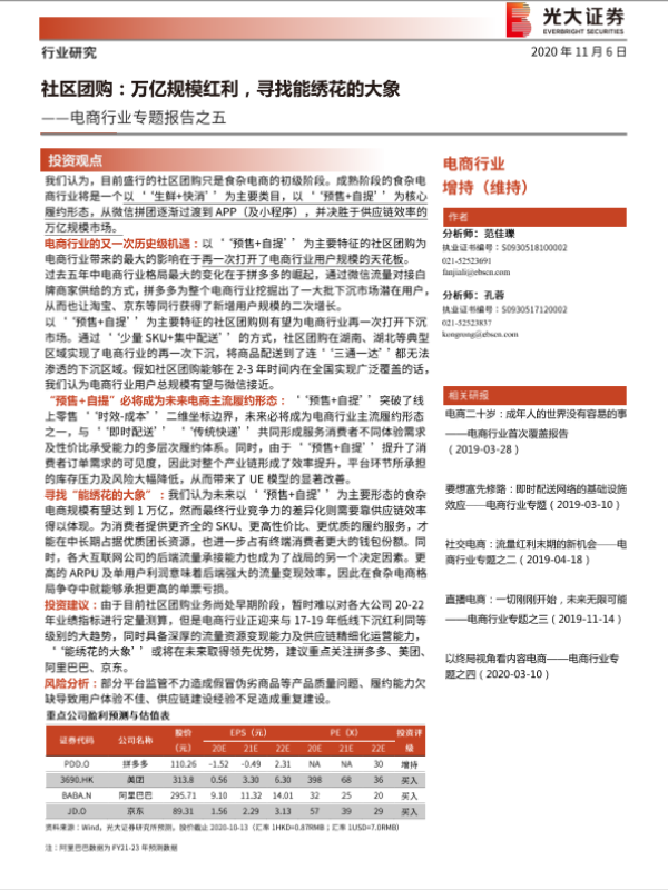 【光大证券】【20201106】电商行业专题报告之五:社区团购,万亿规模红利,寻找能绣花的大象-15页