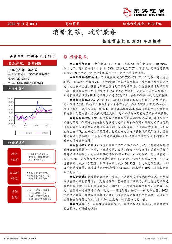 【东海证券】【20201109】商业贸易行业2021年度策略:消费复苏,攻守兼备-21页