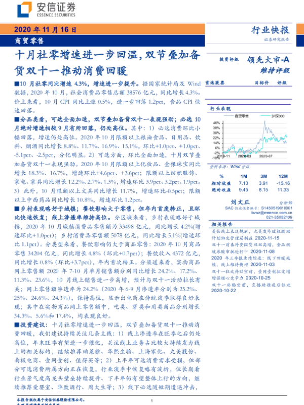 【安信证券】【20201116】商贸零售行业快报:十月社零增速进一步回温,双节叠加备货双十一推动消费回暖-8页