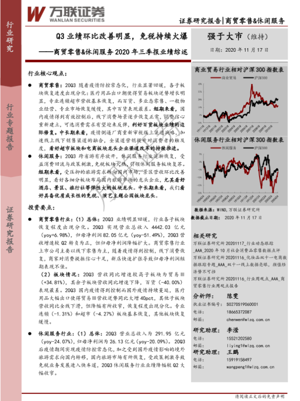 【万联证券】【20201117】2020年三季报业绩综述:Q3业绩环比改善明显,免税持续火爆-17页