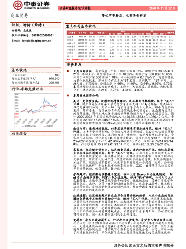 【中泰证券】【20201122】商业贸易行业周报:餐饮消费转正,电商再创新高-17页