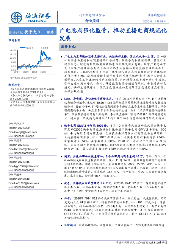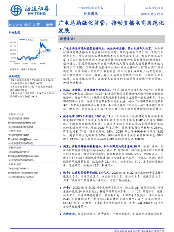 【海通证券】【20201128】商业贸易行业周报:广电总局强化监管,推动直播电商规范化发展-11页