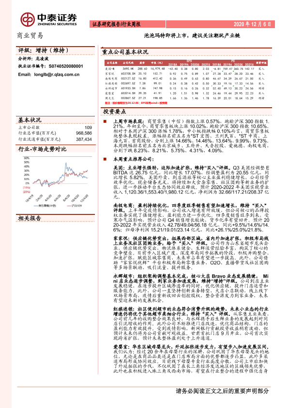 【中泰证券】【20201206】商业贸易行业周报:泡泡玛特即将上市,建议关注潮玩产业链-13页