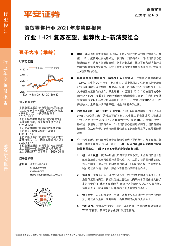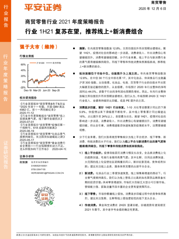 【平安证券】【20201206】商贸零售行业2021年度策略报告:行业1H21复苏在望,推荐线上+新消费组合-24页